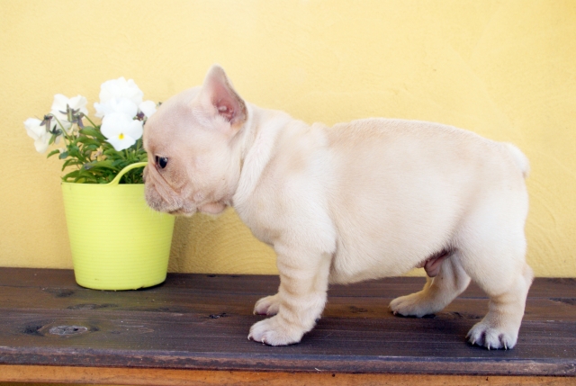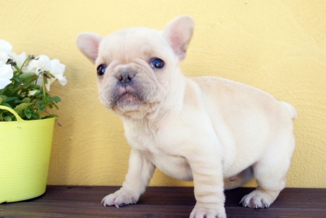 コメント | マッチョ系のガッチリした体つきのキレイな子です。 よく張った頭部とショートバックで将来見栄えのするガチムチ筋肉フレンチになりそうです。 パパとママのイイトコドリした将来有望な子です。 |