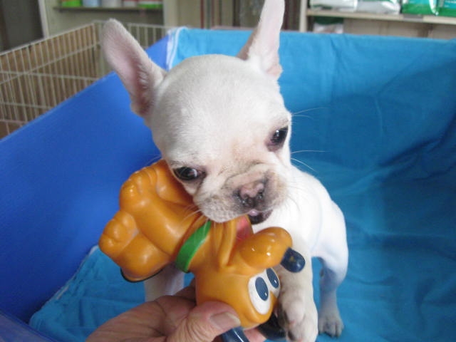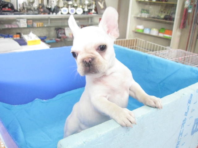 コメント | 不動の人気フレンチちゃんです(^^)/ 3匹兄弟で毎日遊んだり喧嘩したりして過ごしています 兄弟喧嘩は凄いですよ~~~ 発育も良くスクスク育っています。 コロコロの健康優良児です 実物のぶさかわちゃんを是非見に来て下さい。 見学のご予約は随時受け付けております。 どんな小さなことでもお気軽にお問合せ下さい。 |