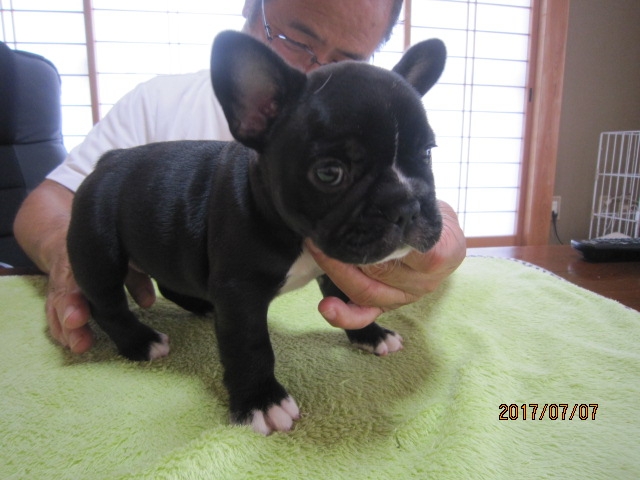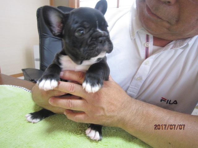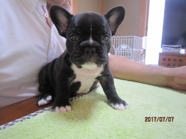 掲載されていた仔犬が可愛らしく見学を希望、西村さんよりすぐご連絡頂きました。見学に行った時には仔犬だけじゃぁ無く親犬や他の仔犬など沢山のフレンチにふれ合い、とても気さくな西村さんとお話ししていて幸せなひと時でした。帰りは近くの高速の入り口まで案内して頂きました。我が家に迎え入れて数日経ちますが元気で愛くるしくってたまらないです。(大阪府 女性)