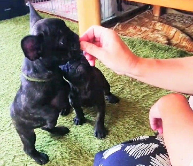 この度、とても元気な子犬を購入させていただきました。昨年病気で亡くなったフレンチブルドックの事もあり、健康で元気な子犬を探し、小堀ブリーダーさんにたどり着きました。とても熱心なブリーダーさんで、フレンチブルドックをとても愛しておられることが伝わりました。フレンチブルドック飼育経験者の私ですが、新たに教わるお話もあり、とても勉強になりました。子犬も毛並みが良く、とても元気で安心して購入する事ができました。 大切に育てます。ありがとうございました。またわからない事があれば、連絡します。末永くよろしくお願いします。(滋賀県 女性)