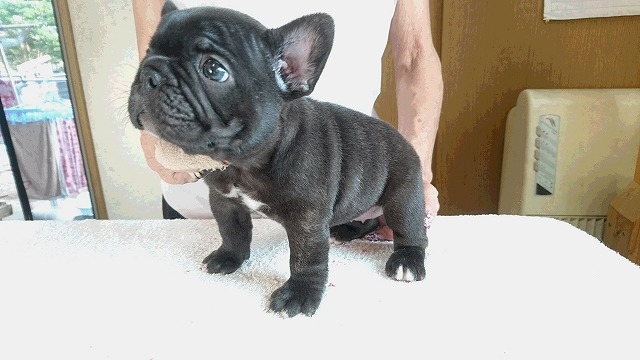 コメント | 仔犬 凄くきれいなブラックブリンドル&ホワイトの可愛い子犬です。 小振りですが、骨太の明るく健康で穏やか!! 飼いやすい性格の仔犬です。 性格抜群です。 性格 抜群の明るくしかし、落ち着いた穏やかな性格、 性格は安定しています。 大変可愛く、扱いやしい性格です。 健康 問題点は有りません。食欲抜群(一般に仔犬時に多く食べさせると犬が大きくなると言うところがありますが、 その様なことは決して有りません。体高体長のサイズはほとんどが親達の遺伝です。肥満は別ですが・・・) 容姿 フレンチブルドックらしい基本的な美しさを充分兼ね備えている仔犬です。頭部も確りして、顔もつぶれ、 良いお顔をしています。 やや小振りの可愛い仔犬です。 毛色 ブラックブリンドル(ダークブリンドル)美しい毛並みです。 血統内容 抜群 父犬方 血統・父の父(祖父)アメリカチャンピオン(クリーム) 父の母(祖母)JKCchの子 性格 雄らしく堂々とした温厚な犬です。人気抜群! 健康で今まで病気は一度も有りません。 充分チャンピオンに成れる要素を持っていますが、可愛くてドックショーに出しそびれました。 体重 9kg程度 毛色 濃い目のクリーム 母犬方 血統・父の父(祖父)JKCチャンピオン(クリーム) 父の母(曾祖父)アメリカチャンピオン(クリーム) 性格 明朗、活発の素直な良い子です。犬質もすばらしく可愛い子です。 体重 8kg~8.3kg 毛色 クリーム 他 |