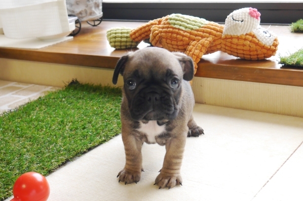とても元気で可愛い娘をお迎えさせていただきました。見学までの間、色々と当方からお願いをしてしまいましたが、快く受け入れて頂き、遠方からでも不安なく見学にお伺いすることができました。 見学時には迎え入れ後のパピーちゃんとの接し方や、新しいグッズに至るまで、とても丁寧に説明をして頂き、とても勉強になりました。 フレブル愛の溢れる小堀ブリーダー様のもとで育ったワンちゃんですので、不安なく安心してお迎えする事ができました。 「仔犬は、家族の誰か一人が責任を負い育てるのではない。家族みんなで育てるものだからね!」との教えを胸に、家族全員で大切に育てます。 この度は素敵な出会いを本当に有難う御座いました。 また何かありましたら、ご相談させてください。今後もご指導を宜しくお願いします。 素敵な出会いの場を提供してくれたブリーダーズの皆様にも感謝しております。この度は誠に有難う御座いました。(茨城県 男性)