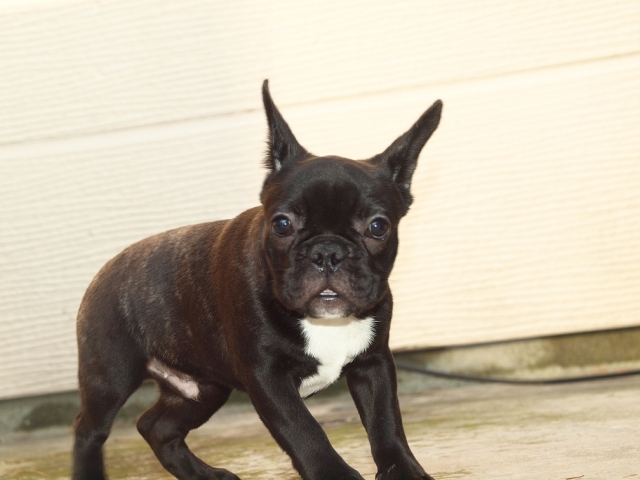 コメント | 父親は毛色ブリンドル ポーランド外産(秋からチャンピオン目指してショーチャレンジする子です。) 母親はイギリス外産直子 毛色フォーン 骨量のある、お顔が大きいフレンチブルドックらしい将来がとても楽しみ な子です。 出べそ、ヘルニアなどありません。 ペットとして可愛がって下さる方からのお問合せお待ちしております。 |