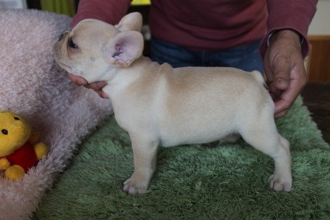 コメント | PAPA犬=我が家の デューク(ブリンドル)JKC.チャンピオン直子 ドッグショーで活躍している犬舎さんから譲っていただきました MAMA犬=我が家の きなこ(フォーン&ホワイト)JKC.チャンピオン直子 我が家に在籍しています AM.チャンピオンの アドニスの孫です PUPPY=毛色:フォーン 1月29日 健康診断OK・1回目ワクチン接種済です 3月 1日 2回目ワクチン接種済です 体重~4kg BABYの頃より ペットシートを使用していますので 上手にシートで排泄もできます。お昼間は 兄弟3匹とともに テラスやリビングでいっぱい遊び♪その後Foodもしっかり食べて♪ぐっすり!睡眠を取っていますので とても健康です 。 お迎えの際は BABY・PUPPYのお写真をいっぱい!ミニアルバムにして お渡ししています。(もう準備してあります♪)新しいオーナー様に いつもとても喜んでいただいています♪ オーナー様とは お迎え後もずっとフォローさせていただいておりますので ご安心を♪ 色素のこと・体幹のこともございますので 今回はブリンドルのPAPAと フォーン&ホワイトのママという組み合わせで BABYを出産してもらいました。 毎日 愛情をいっぱいかけまして ママ犬とともに子育てをしてまいりましたので ずっと大切にして頂けるオーナー様に お譲りしたいと思いますので どうぞよろしくお願い申し上げます。素敵な出会いがございますように♪ |