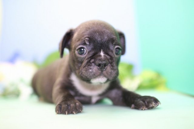 コメント | 両親ともブリンドルから産まれた、ブリンドルの女の子です。 お目目クリクリのとても可愛い女の子です。 生まれたときはとても小さな子でしたが、現在は食欲モリモリで ムチムチコロコロになりました。 性格もよく、他の兄妹たちと仲良く生活しています。 見学はいつでもできますので、お気軽にお問い合わせください。 |