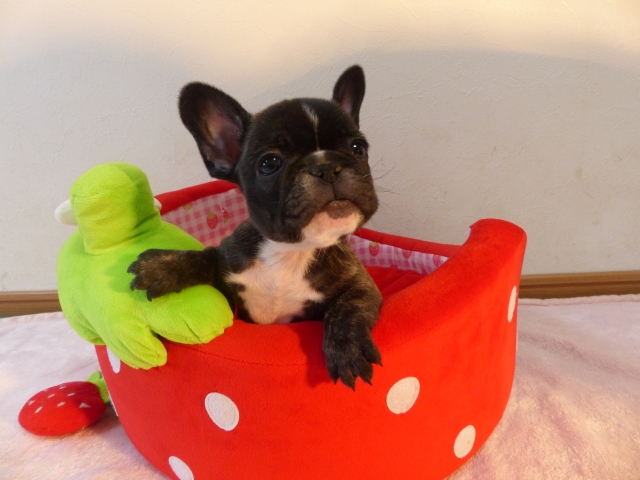 | コメント | パパ クリーム JKCチャンピオン犬・某首輪会社モデル犬。 ママ ブリンドル 父、外産と母、パイドの間に産まれた可愛い子です。 子犬について むっちりころころの良血統のご紹介です! 性格は、とてもフレンドリーでそばに行くと走り寄ってきます。 頭も大きく、ショートボディーで骨量もありがっちりしています。 もう少しすると、耳も綺麗に立ち、顔立ちもはっきりしてフレブルらしくなってきますよ。 トイレのしつけ、できています(*^o^*) ママ犬は、私たち家族と一緒に生活しています。 とても愛嬌があり、いつもいやしてくれています。 お気軽にお問い合わせくださいね。 写真だけではこの子たちの可愛さは伝わりません。 とても可愛い子犬たちにぜひ会いに来てください。 |