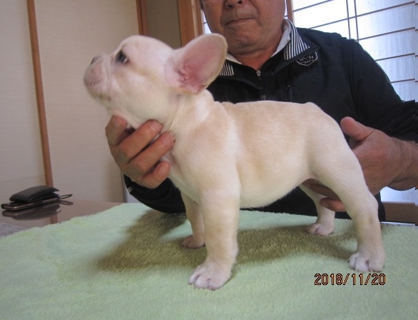 掲載されていた仔犬が可愛らしく見学を希望、西村さんよりすぐご連絡頂きました。見学に行った時には仔犬だけじゃぁ無く親犬や他の仔犬など沢山のフレンチにふれ合い、とても気さくな西村さんとお話ししていて幸せなひと時でした。帰りは近くの高速の入り口まで案内して頂きました。我が家に迎え入れて数日経ちますが元気で愛くるしくってたまらないです。(大阪府 女性)