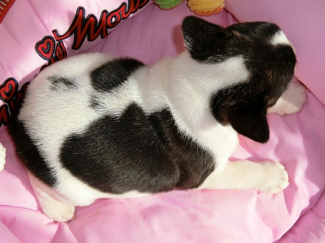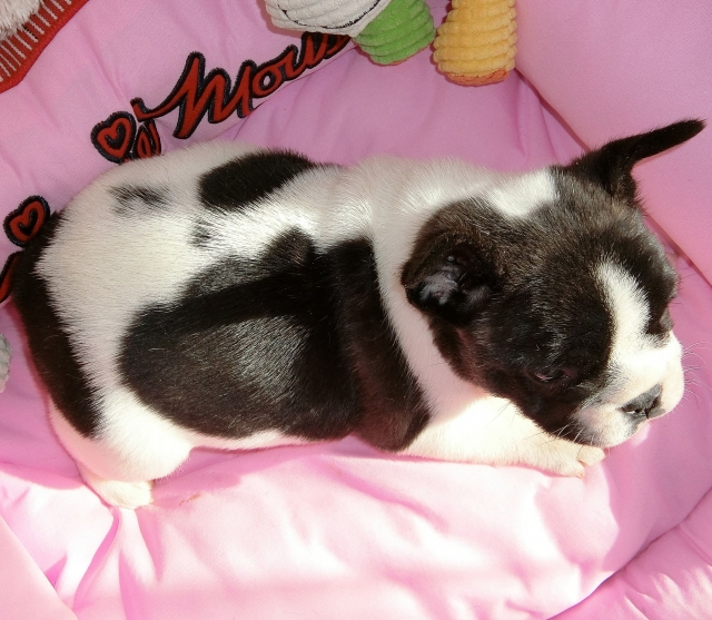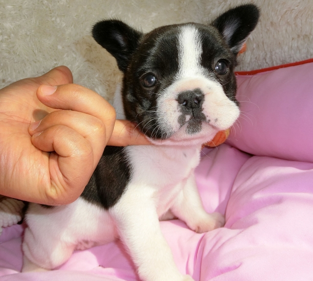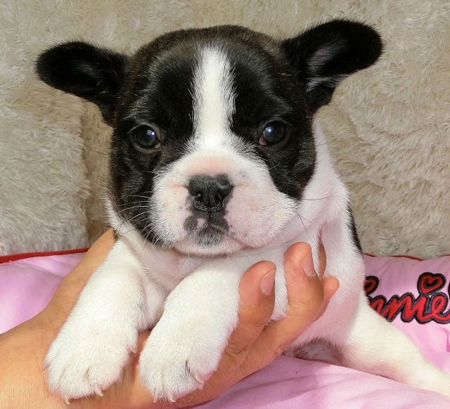 コメント | パイドの女の子。丸々に太ってしっかりした体形です。 1頭で生まれたので、お母さんの栄養を独り占めして丸々太って体形も大きめに育っています。 父親はフォーンでしっかりした体形。約11キロ。小柄です。 母親はブリンドルで胴短、短足、丸々体形、約11キロ。小柄です。 栄養状態が良いので、早めに大きくなっていますが、最終的には11キロ程度で小柄なサイズになると思います。 今は離乳食とおっぱいの両方で、グングン育っています。 すでに、自分でトイレに行ってうんちやおしっこをするようになりました。 トイレのしつけ済みです ! ! お持ち帰りのキャリーボックスの中では、お車や電車が動いているときにはしません。 おうちに着いて、トイレに行ってからします。 お帰りの時間がかかる場合は、停車して5分もすればキャリーボックスでおしっこをしますので、休憩を入れてください。 ペットショップなどで見かける、ウンチの上で平気で寝ているような子犬を飼うと、おうちでのトイレのしつけはかなり難しくなります。 おいで頂きましたら、子犬の飼い方、しつけ方のお話を1時間くらいお話しさせていただきます。 必ず賢くて素直に、飼い主様のお話の分かる子に育てることができます。 飼い方、しつけ方など、後々までご相談してください。 龍ヶ崎市 佐貫駅の近くで、カーナビ一発で家の前に来ます。 ご家族皆様でおいでください。 |