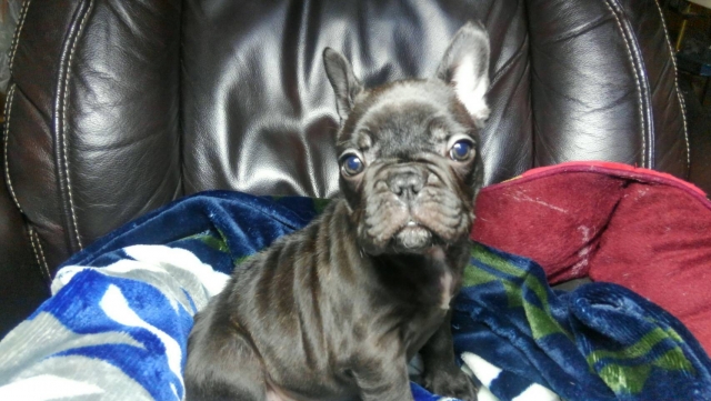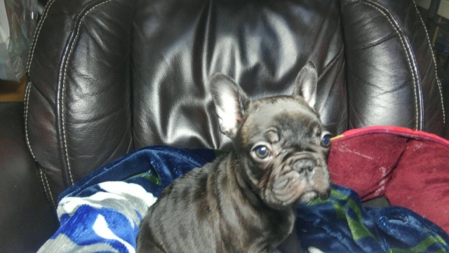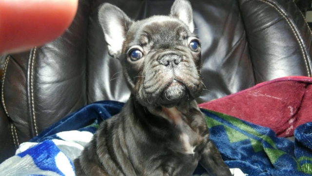 コメント | ブリンドルのオスになります。 元気で可愛くとても優しい性格です。 胸のエプロンが途切れてます。 母犬、8キロ 父犬、9キロです。 |