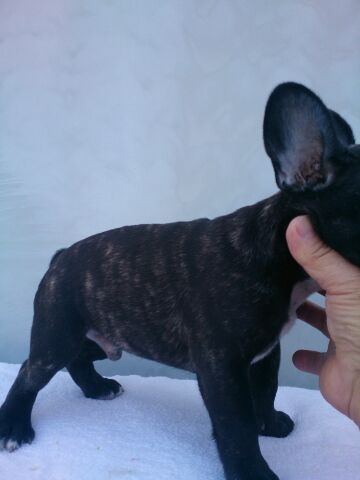 コメント | 父親は、パイド 母親は、ブリンドル 4月2日現在の体重は、1.7Kgです。 『私見方』成犬時は、抱っこの出来る重さだと思います。 性格の明るい仔犬です。 元気に日光浴をしながら遊んでいます。 令和1年5月1日現在 2.8kg コンパクトに育ってます。 |