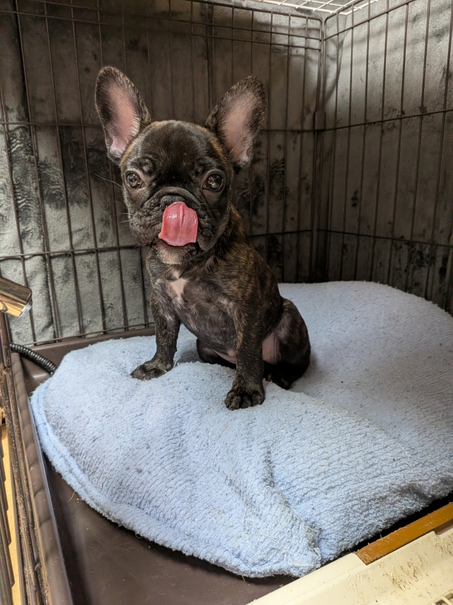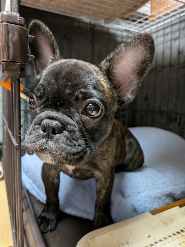 | コメント | 可愛い顔立ちのブリンドル女の子。トイレも上手にでき夜もおとなしく寝る様になりお利口さんです。健康診断で健康優良児でしたがデベソ(臍ヘルニア)があり大きくなっても治らない場合はご相談下さい。避妊手術の時に治す手術ができます。 |